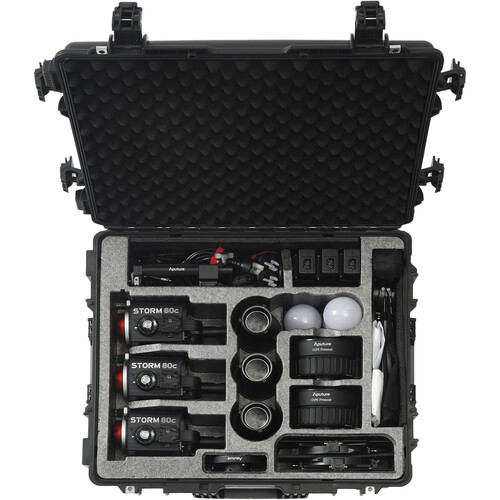 Adding a go-anywhere option to Aputure’s line of BLAIR-CG LED chipset lights, the STORM 80c BLAIR-CG LED Monolight is a compact point-source fixture offering a tunable palette with extremely high color accuracy. It pairs a powerful and innovative full-spectrum chipset with advanced white-point control, professional color accuracy, a secure Mini ProLock Bowens accessory mount, and sealed-seam IP65-rated construction for working in extreme conditions. The STORM 80c comes with a 35° hyper reflector, diffuser, soft case, mount cover, and power adapter with a cable.