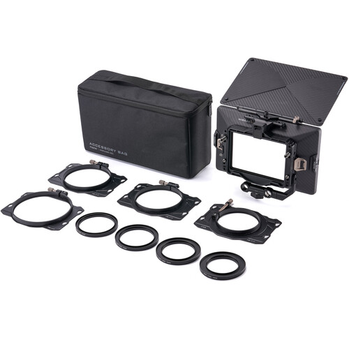 Create a matte box configuration that best suits your creative vision with the Mirage Pro Matte Box Basic Kit from Tilta. This matte box kit includes 95, 110, 114, and 136mm clamp-on adapters for use with a wide variety of lenses with front outside diameters. Four additional lens thread adapter rings in 67, 72, 77, and 82mm sizes provide additional compatibility. You can even attach the matte box directly to your rod-mounted rig with the 15mm LWS rod mounting bracket.
