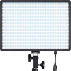 Designed for on-the-go creating, the Pano 120c is an ultraslim and travel-friendly mobile light panel approximately the size of a 15″ laptop. Use the lightweight panel in tough-to-reach spaces in outdoor or studio shoots for a simple but powerful lighting option. With its vast 2300-10,000K CCT color range and green-magenta adjustments to produce accurate skin tones, the Pano 120c produces up to 13,490 lux at 3.3′ at 6500K to illuminate small spaces and large studio settings with bright and colorful lighting. The light’s Quick Operation mode automatically adjusts color temperatures and brightness without additional hassle and saves frequently used settings with the fixture’s custom shortcuts option.
