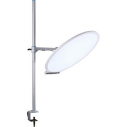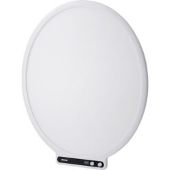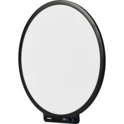 Adjust brightness or color temperature with front-facing knobs.